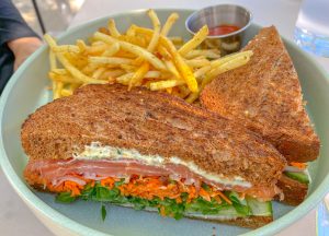 Lunch offers a range of vibrant salads and sandwiches, such as the smoked salmon with whipped herb goat cheese and sweet carrot slaw, or the burrata and Calabrian salami with roasted pepper and hot honey. Capturing the essence of Middle Eastern social culture and food at its center, mezze encourages guests to share in a spread of small plates with baba ghanoush, charred savoy cabbage, quinoa and apple tabouli, confit albacore, roasted carrot hummus, mushrooms a la grecque. Add a berbere yogurt marinated swordfish kebab plate, the toum roasted chicken marinated in whipped garlic (above), Aleppo pepper, and sumac, or enjoy a heartier lamb bulgur burger with shredded lettuce, cabbage, sumac red onion, tzatziki, and mango chutney on a brioche bun.